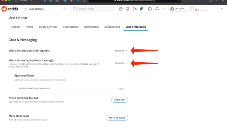 - Limit direct messages and chat requests