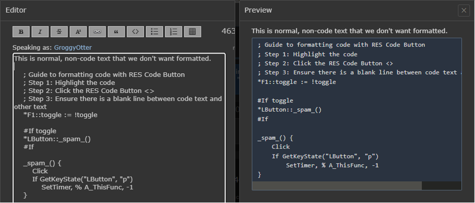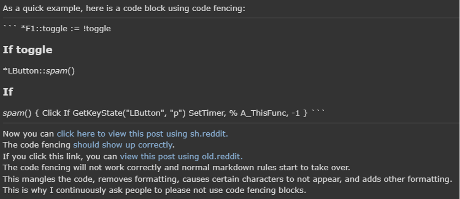 Code Blocks on Reddit