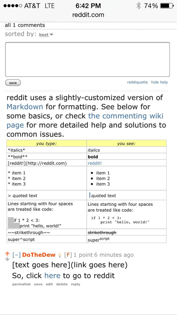 Basic Reddit Formatting (Markdown Overview)